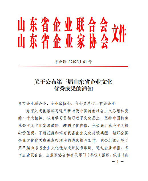 日前,山東省企業(yè)聯(lián)合會及企業(yè)家聯(lián)合會下發(fā)了“關(guān)于公布第三屆山東省企業(yè)文化優(yōu)秀成果的通知”,集團(tuán)旗下多家企業(yè)名列榜單,榮獲山東省企業(yè)文化建設(shè)成果二等獎。