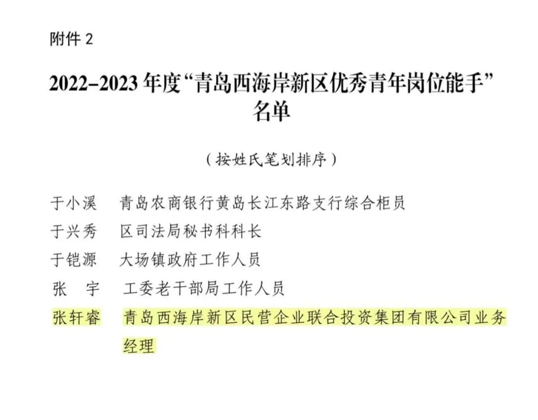 近日,共青團(tuán)青島西海岸新區(qū)委員會發(fā)布關(guān)于命名表彰2022-2023年度青島西海岸新區(qū)青年文明號、優(yōu)秀青年崗位能手的通知,和關(guān)于表揚 2023 年青島西海岸新區(qū)優(yōu)秀青年志愿者、優(yōu)秀青年志愿服務(wù)組織、優(yōu)秀青年志愿服務(wù)項目的決定。瑞源控股集團(tuán)旗下九方泰禾國際重工(青島)股份有限公司生產(chǎn)部榮獲2022-2023年度“青島西海岸新區(qū)青年文明號”,民營企業(yè)聯(lián)合投資集團(tuán)有限公司張軒睿榮獲“青島西海岸新區(qū)優(yōu)秀青年崗位能手”,瑞源控股集團(tuán)有限公司崔恒、趙娣榮獲“青島西海岸新區(qū)優(yōu)秀青年志愿者”稱號。