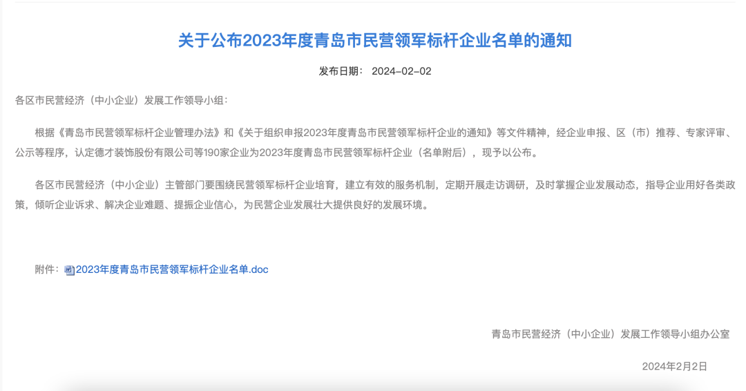 近日,2023年度青島市民營領(lǐng)軍標(biāo)桿企業(yè)名單公布,經(jīng)企業(yè)申報(bào)、區(qū)(市)推薦、專家評審、公示等程序,瑞源控股集團(tuán)、青島文達(dá)通科技股份有限公司、九方泰禾國際重工(青島)股份有限公司榜上有名。