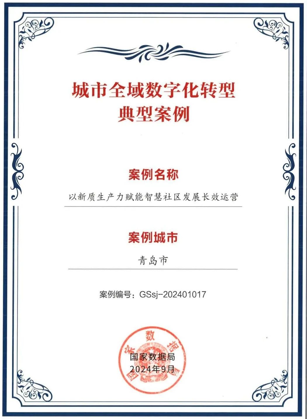 近日,國家數(shù)據(jù)局在重慶召開城市全域數(shù)字化轉(zhuǎn)型現(xiàn)場推進(jìn)會(huì),會(huì)上公布了全國城市全域數(shù)字化轉(zhuǎn)型典型案例。案例覆蓋了城市數(shù)據(jù)基礎(chǔ)設(shè)施、數(shù)據(jù)資源開發(fā)利用、城市數(shù)字經(jīng)濟(jì)、城市數(shù)字治理、數(shù)字公共服務(wù)、數(shù)字場景應(yīng)用等領(lǐng)域,集中反映了各地區(qū)、各部門推進(jìn)城市全域數(shù)字化轉(zhuǎn)型的探索成果和創(chuàng)新實(shí)踐。其中,由青島市推薦的“以新質(zhì)生產(chǎn)力賦能智慧社區(qū)發(fā)展長效運(yùn)營”案例,憑借其在技術(shù)創(chuàng)新、模式典型、應(yīng)用實(shí)效等方面的卓越表現(xiàn)從全國近300個(gè)案例中脫穎而出,成為青島唯一入選案例!文達(dá)通股份不斷探索“科技賦能建設(shè)”和“數(shù)據(jù)驅(qū)動(dòng)運(yùn)營” 有效協(xié)同,為全國智慧社區(qū)發(fā)展長效運(yùn)營提供了一種可復(fù)制、可推廣的示范樣本。